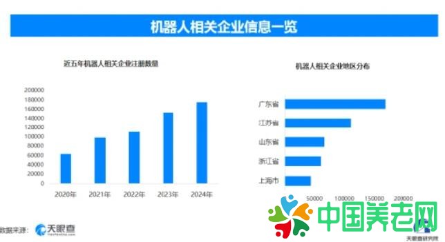 國務(wù)院常務(wù)會議推動“人工智能 +”行動,在此背景下,保姆機(jī)器人成為焦點(diǎn)。 隨著人口老齡化加劇,養(yǎng)老服務(wù)等需求增長,保姆機(jī)器人在智慧康養(yǎng)、智能家居等場景的現(xiàn)實(shí)需求凸顯。中國 60 歲及以上老年人口規(guī)模龐大且持續(xù)增長,為保姆機(jī)器人提供了穩(wěn)定應(yīng)用場景。 未來,保姆機(jī)器人需攻克物理智能和社交智能難題,向多源感知、自主決策等方向發(fā)展。其市場呈現(xiàn)規(guī)模擴(kuò)大、場景拓展融合、企業(yè)競逐細(xì)分賽道的趨勢,正從實(shí)驗(yàn)室邁向規(guī);慨a(chǎn)和商業(yè)化應(yīng)用井噴期,有望走進(jìn)更多家庭。 天眼查專業(yè)版數(shù)據(jù)顯示,截至目前我國現(xiàn)存在業(yè)、存續(xù)狀態(tài)的機(jī)器人相關(guān)企業(yè)超89.1萬家。其中,2025年截至目前新增注冊相關(guān)企業(yè)約9.1萬余家,從企業(yè)注冊數(shù)量趨勢來看,近五年間,機(jī)器人相關(guān)企業(yè)的注冊數(shù)量呈現(xiàn)出逐年增長的態(tài)勢,并在2024年達(dá)到頂峰。 從區(qū)域分布來看,廣東省、江蘇省機(jī)器人相關(guān)企業(yè)數(shù)量位居前列,兩個(gè)省市數(shù)量總和超過27.9萬家,占企業(yè)總數(shù)的31.3%。排在其后的是山東省、浙江省和上海市,分別擁有機(jī)器人相關(guān)企業(yè)超6.6萬余家、4.3萬余家和3.3萬余家。 此外,通過天眼查天眼風(fēng)險(xiǎn)和深度風(fēng)險(xiǎn)來看,涉及司法案件的機(jī)器人相關(guān)企業(yè)約占總數(shù)的2.93%。 |